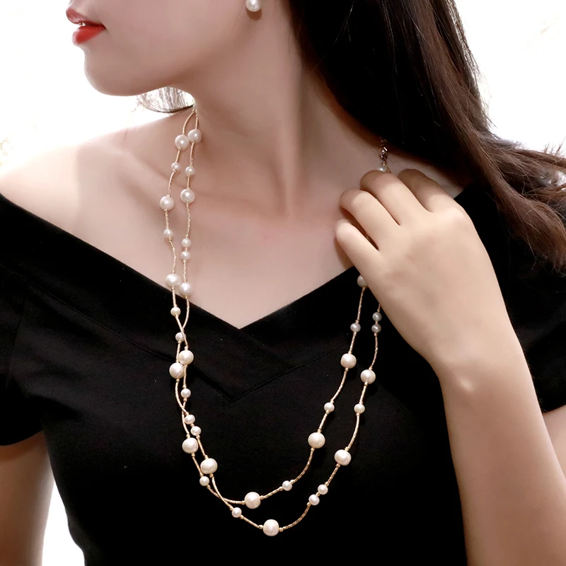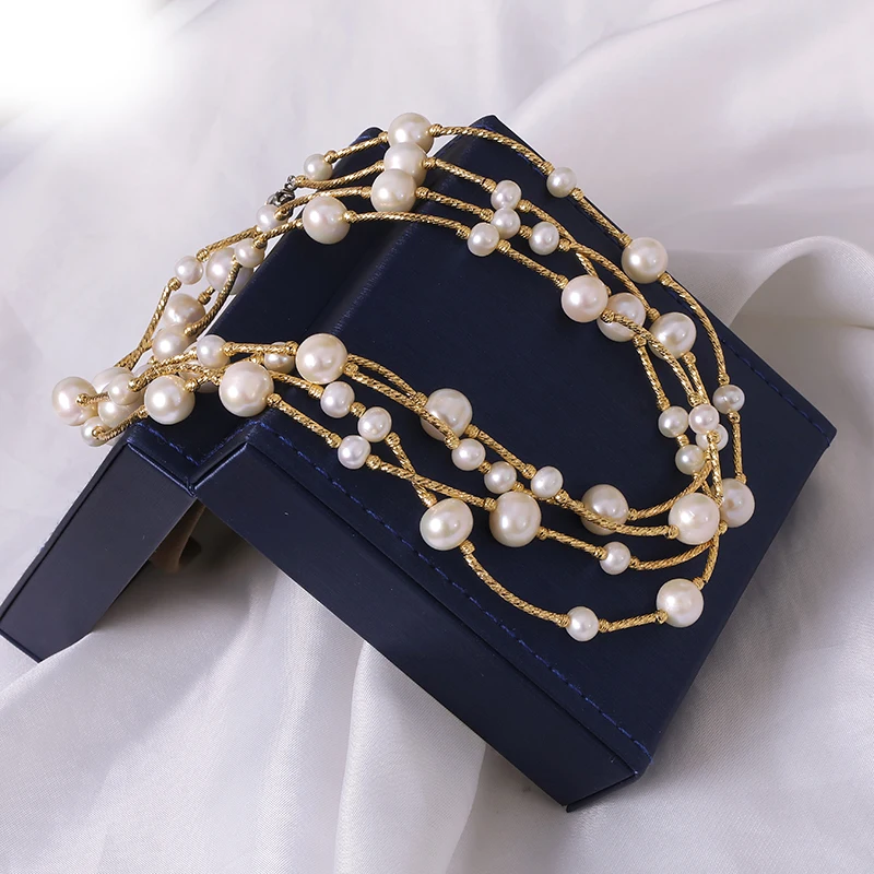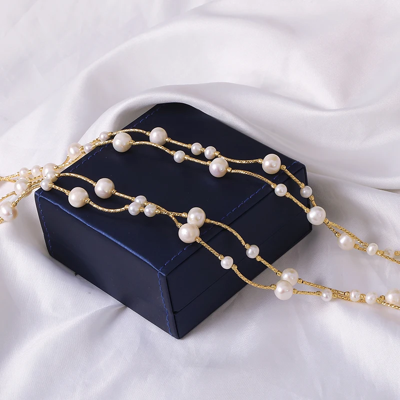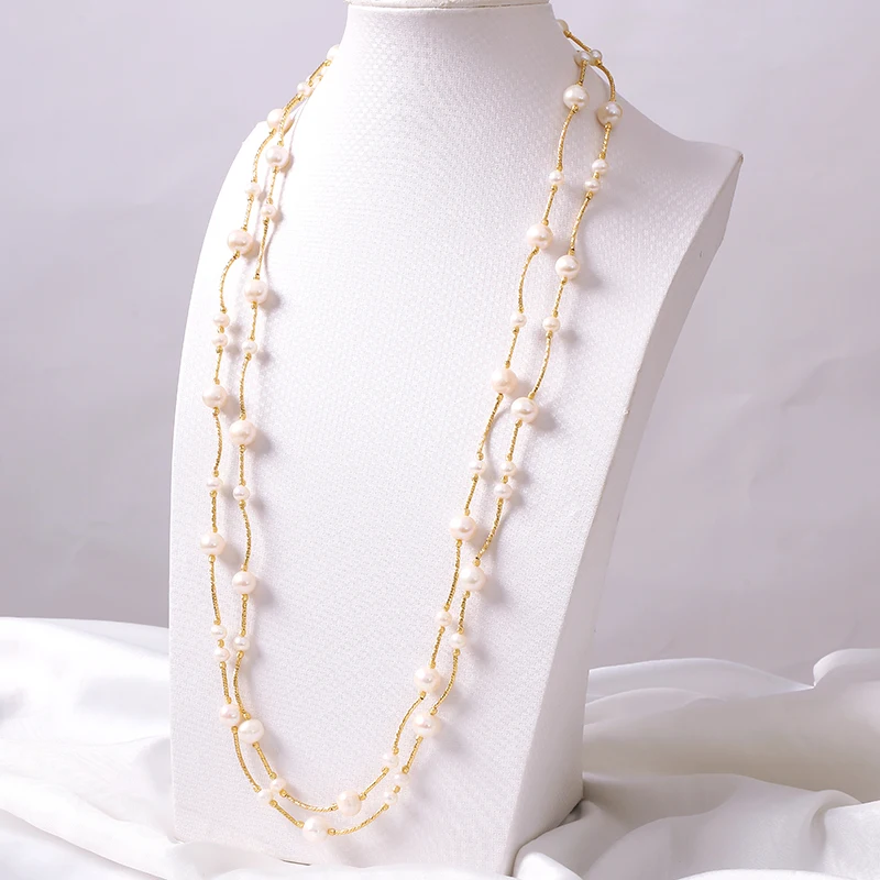 YS 5-10mm Natural Baroque Pearl Necklace Long Strand Sweater Chain Necklace Fine Jewelry