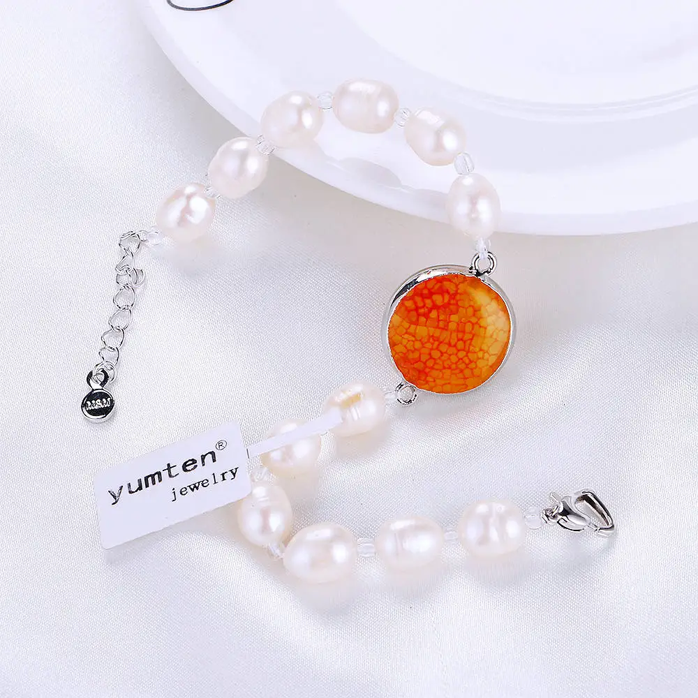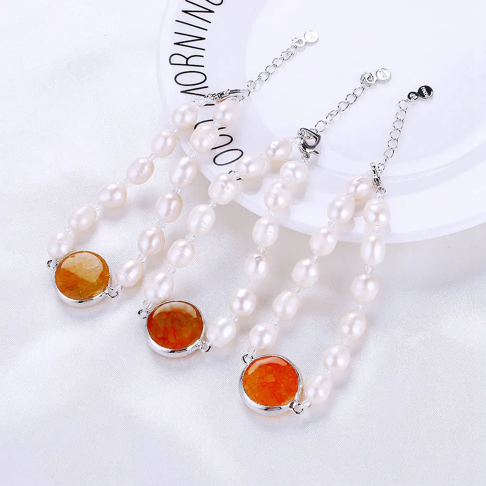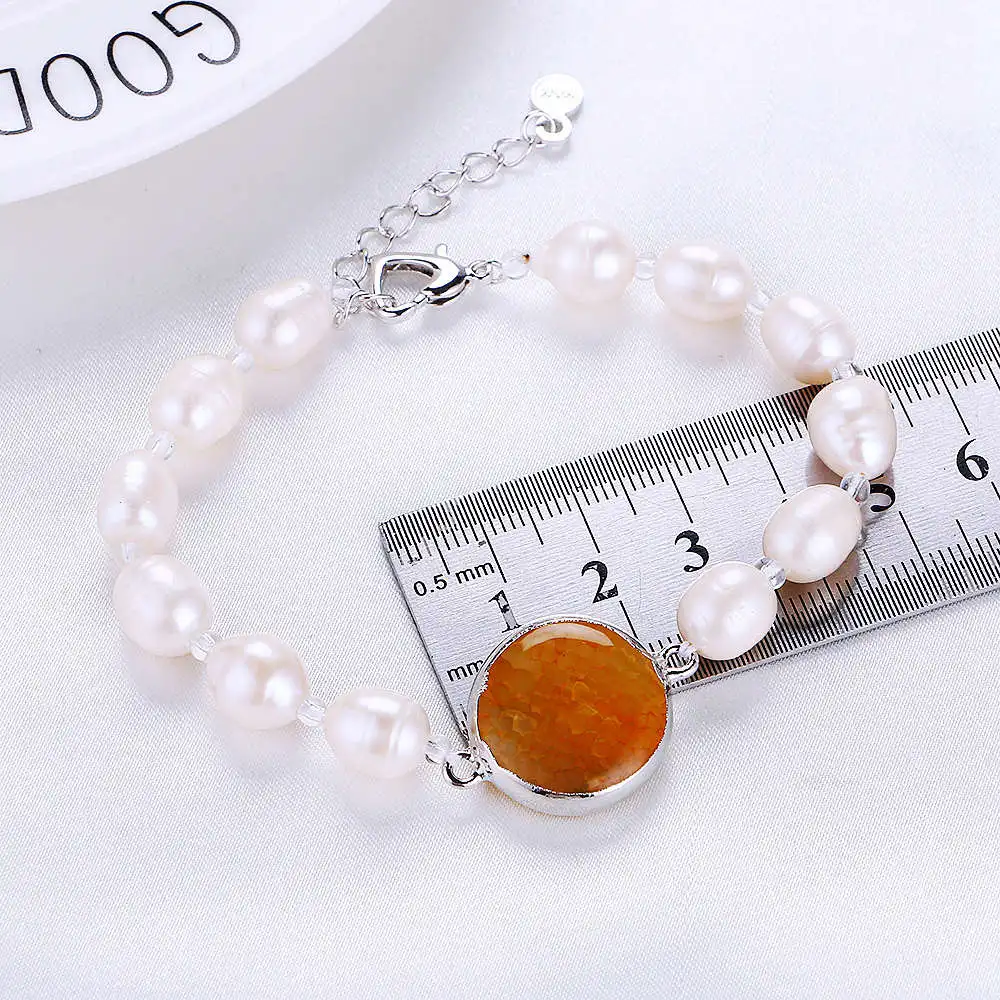 1pc New red gemstone A level Pearls Bracelet round Pearl Boys For Women Natural Pearl Powder Bracelet Jewelry Gifts B017