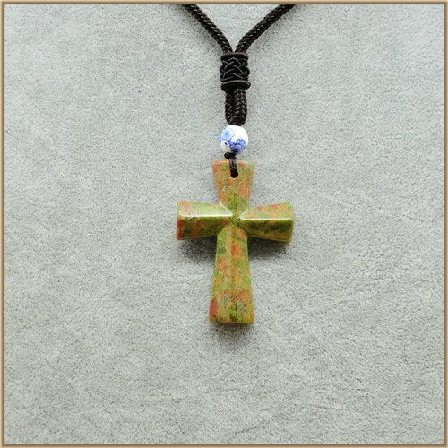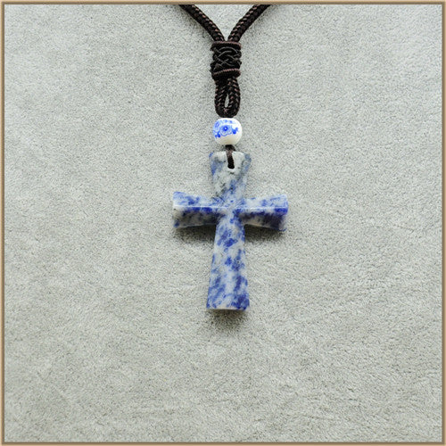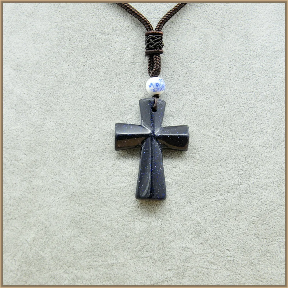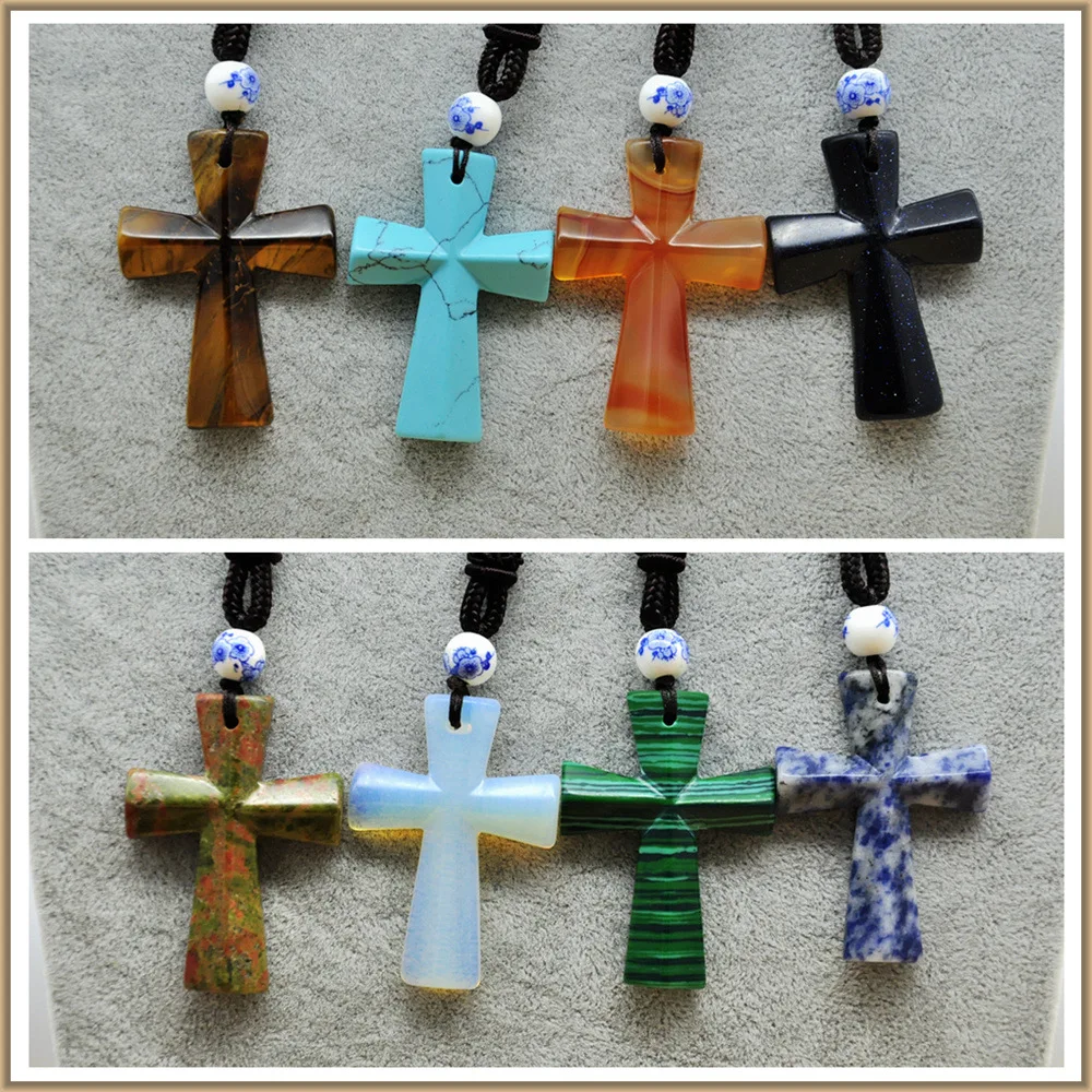 50MM Cross Pendant Necklace Men Natrual blue Aventurine Moonstone Turquoise Agate Classic Party Cross Pendant Necklace