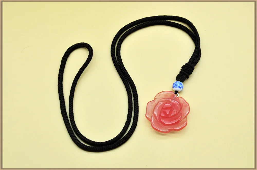Collares colgantes 2020 new arrival in jewelry 33mm Natrual Rose Quartz Pendant Necklaces Women Flower Plant pendant Flor