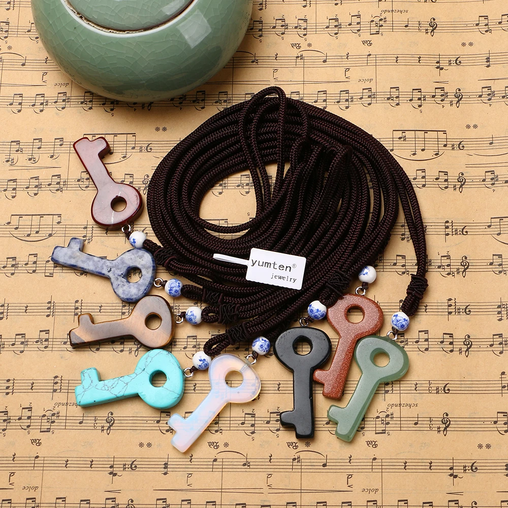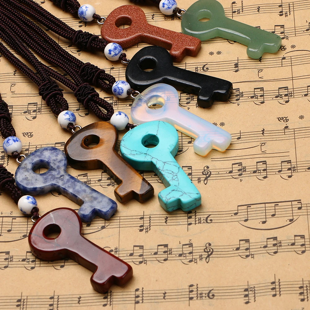 Party Necklace Key Pendant Popular Natural Stone Fine Jewelry Rhinestone Turquoise Granate Sailor Moon Punk Joyas Panda