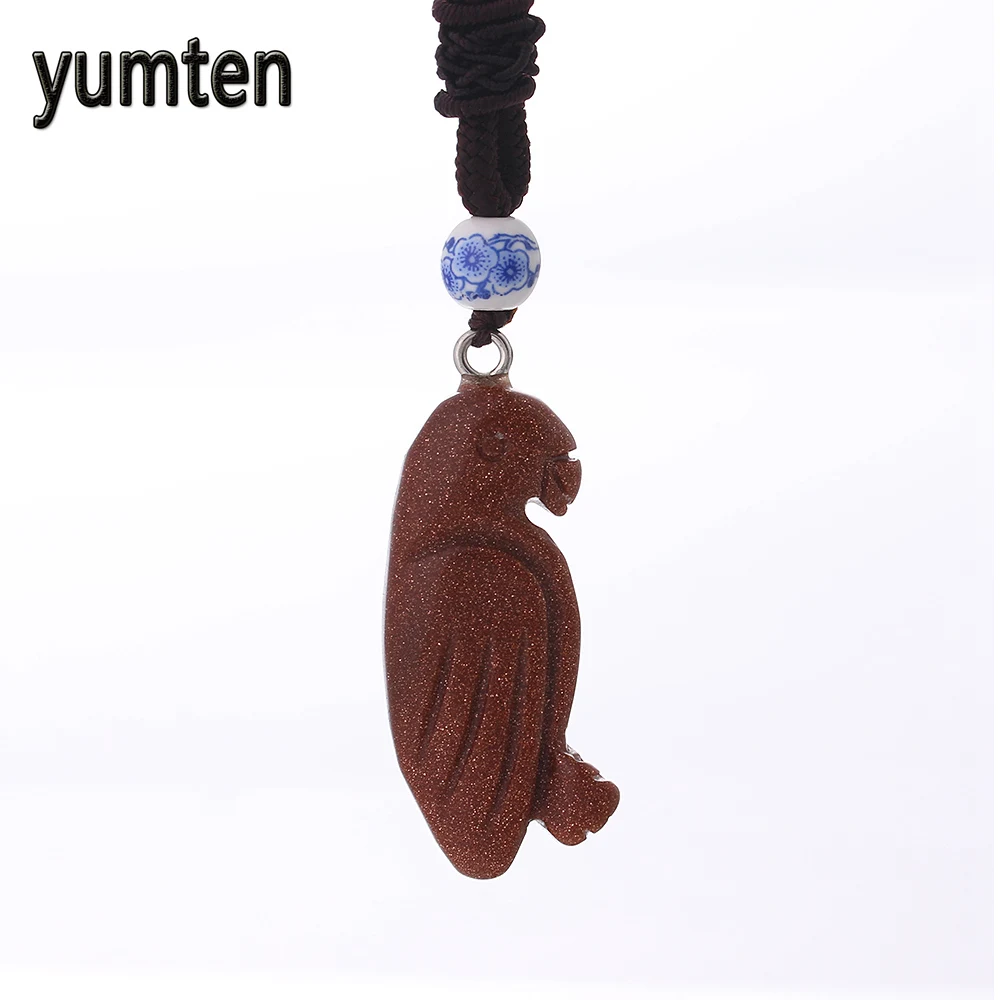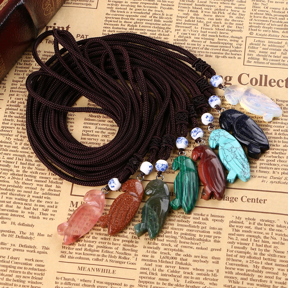 Nature Stone Long Sweater Necklace Bird Pendant Exquisite Crystal Parrot Pendant Gemstone Necklace For Woman Fine Jewelry