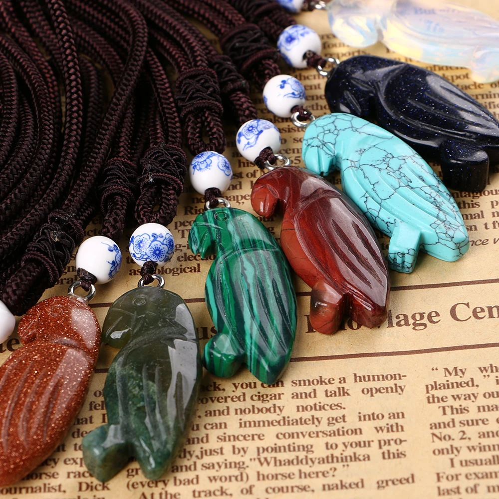 Party Necklace Parrot Pendant Woman Color Natural Stone Jewelry Gem Peridot Octopus Minimalist Fashion Collier Femme