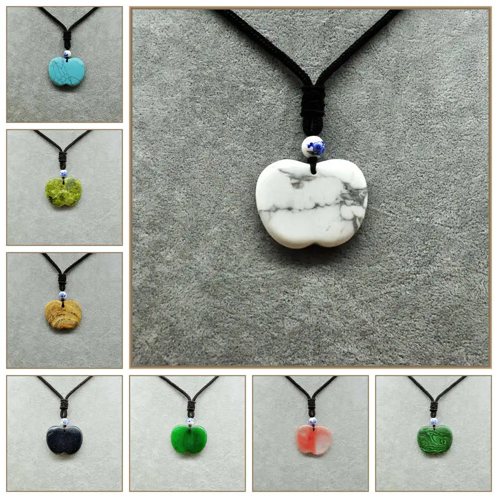 Sapphire Gemstones Necklace Apple Crystal Pendant Labradorite Opal Collier Sautoir Long Kehribar Fashion Female Pendant