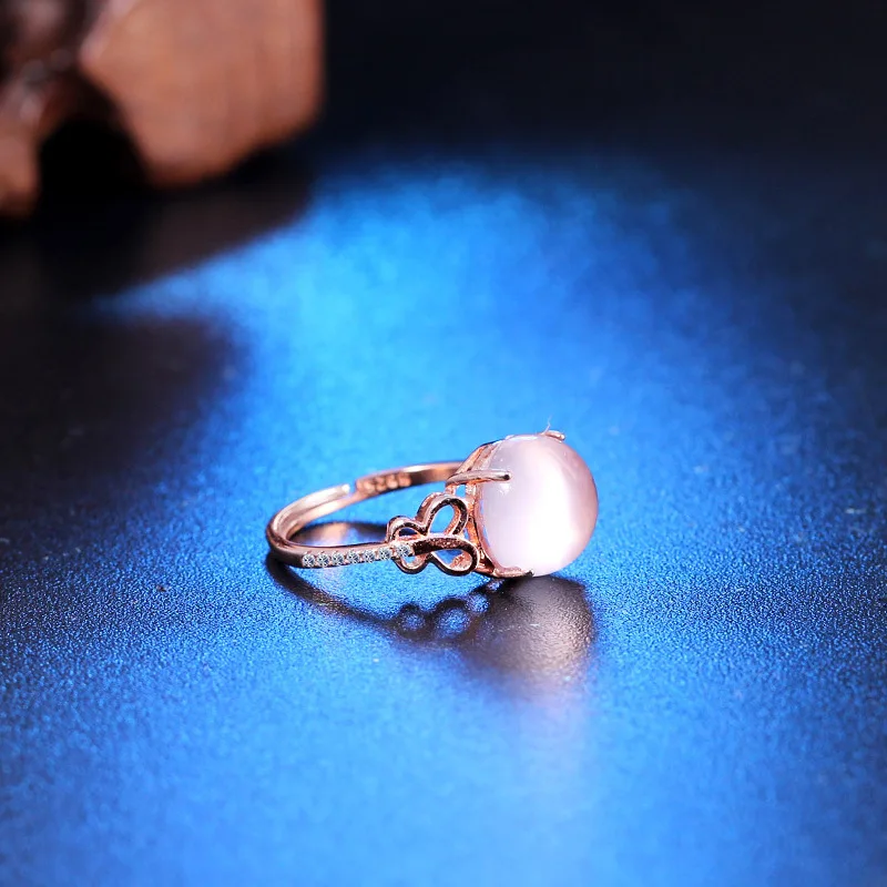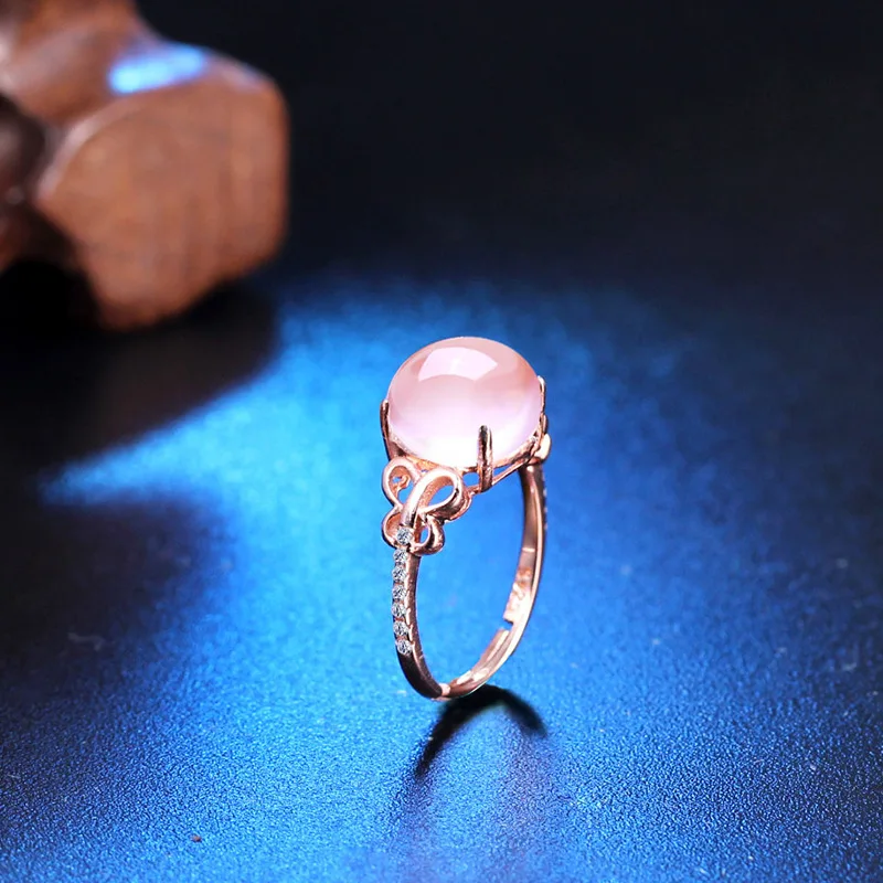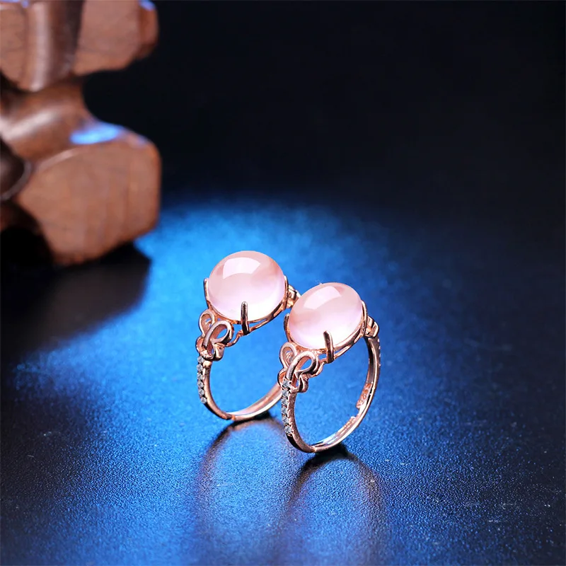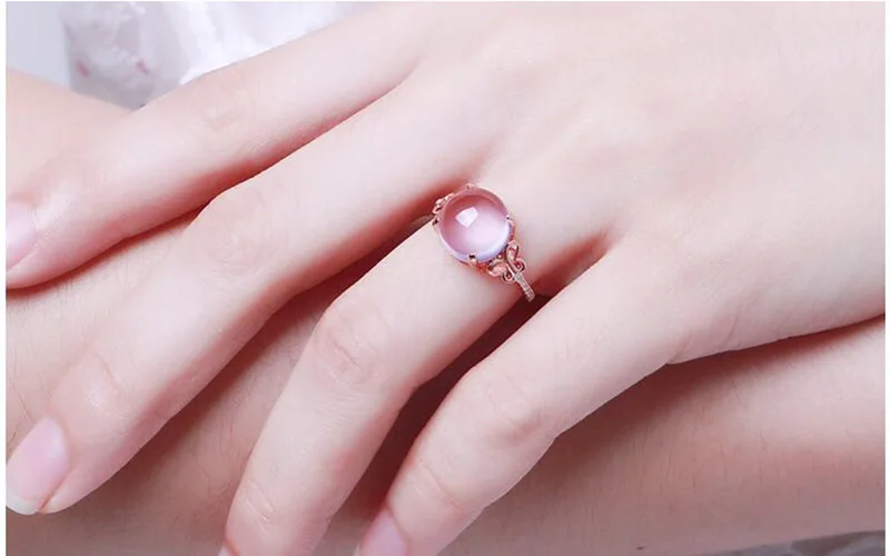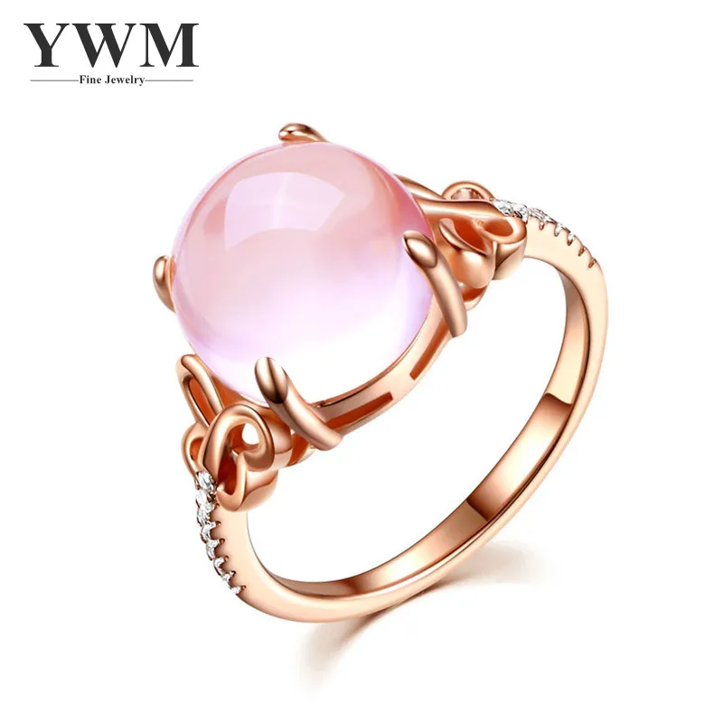 YWM 925 Sterling Silver Enamel Ring Korean Version European and American Popular Jewelry Natural Pink Crystal Ring for Women