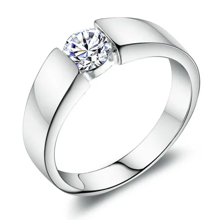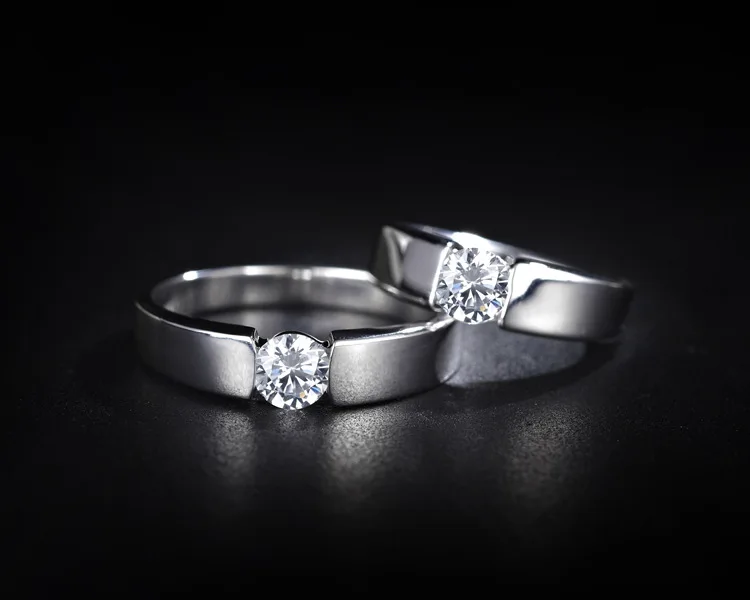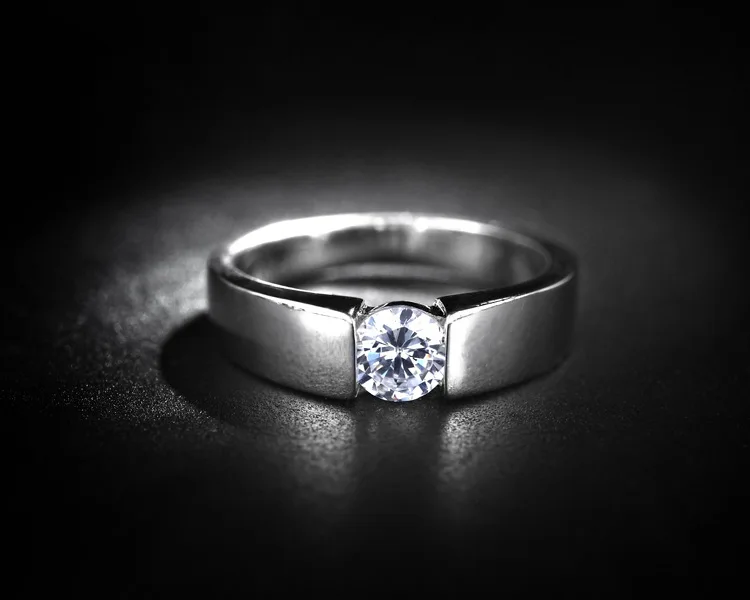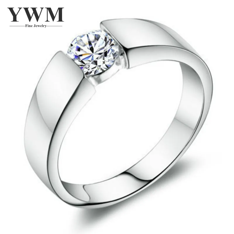 YWM 925 Sterling Silver Wedding Ring Male Ring Korean Version Jewelry Crystal Couple Silver Ring for Men