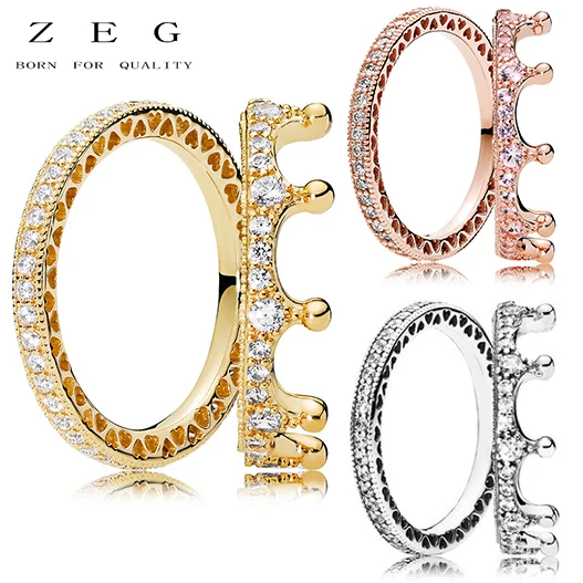 ZEG High Quality 100% Sliver Official Copy 1:1 Pan & Enchanted Crown Ring Have Logo Women Fashion Jewerly Free Mail
