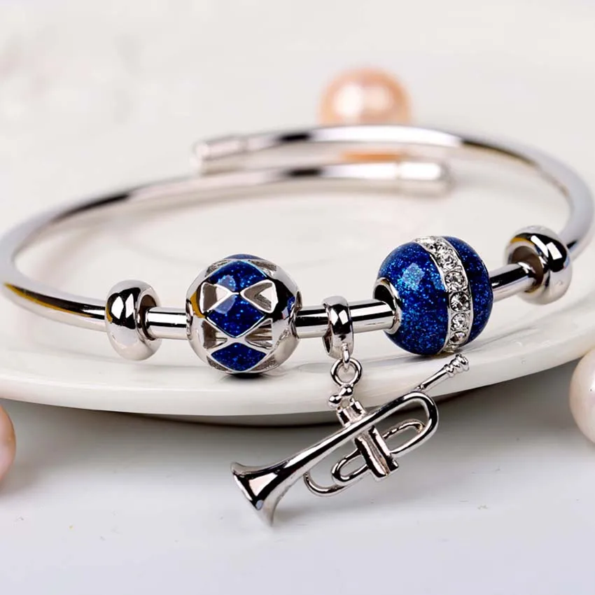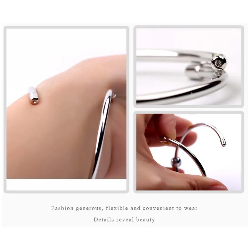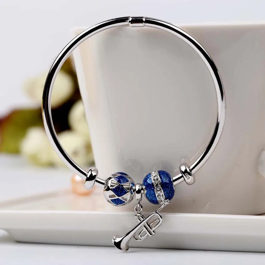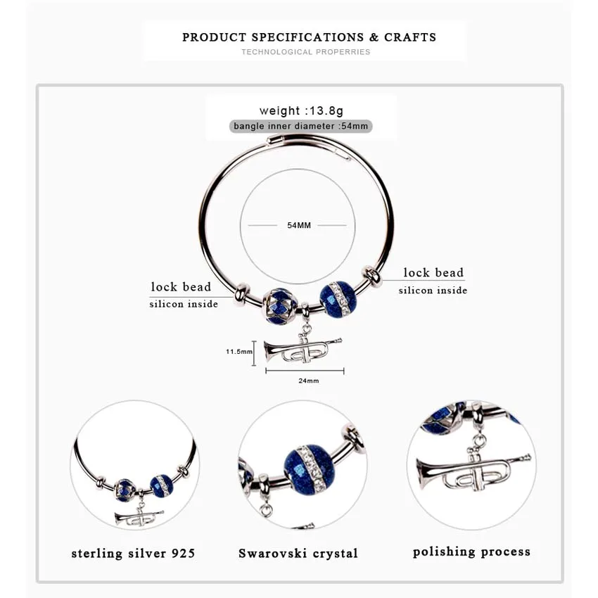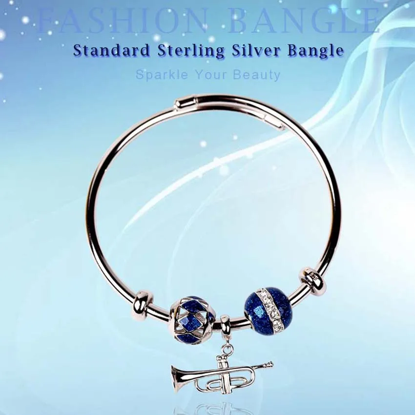 Authentique 925 Sterling Silver Bangles Blue Enamel Bracelet for Women Fashion Jewelry Bangle with Swarovski crystal