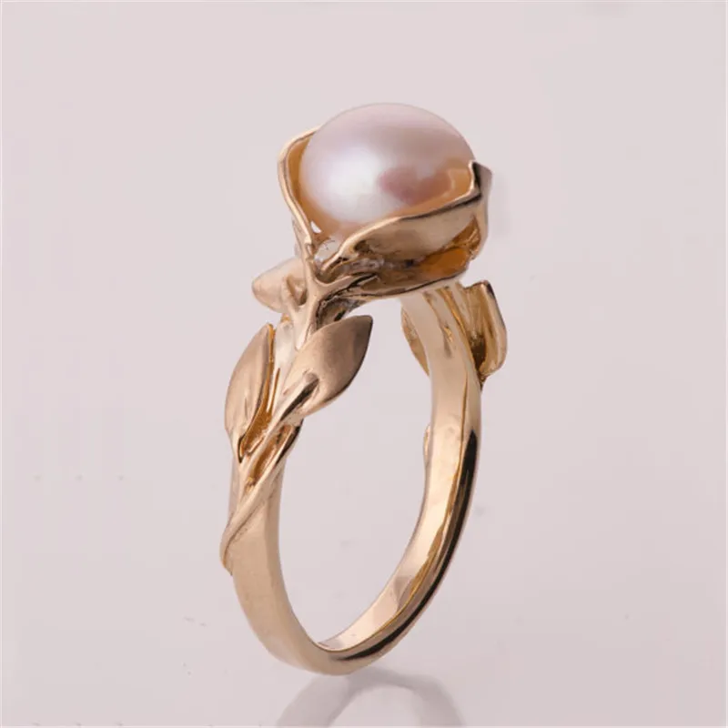 Natural Pearl Ring Fashion Rose Gold and Silver Ring For Women Marriage Engagement Party Jewelry Ring