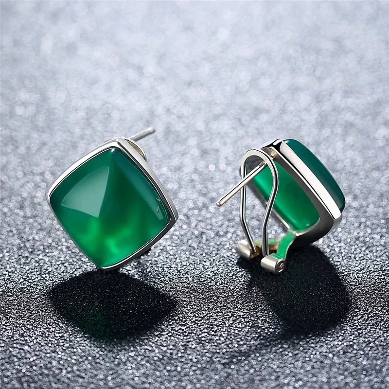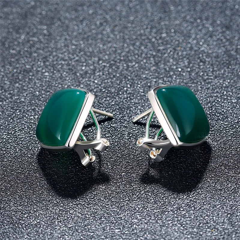Natural Chalcedony Green Stone Earrings with Clip 925 Sterling Silver Jewelry for Women Best Gift