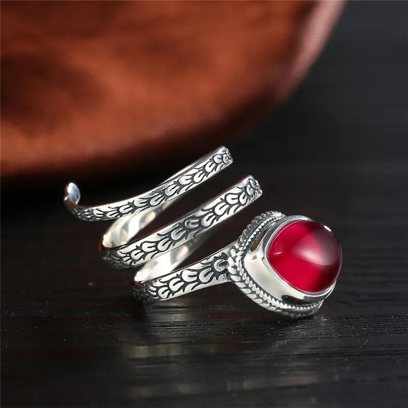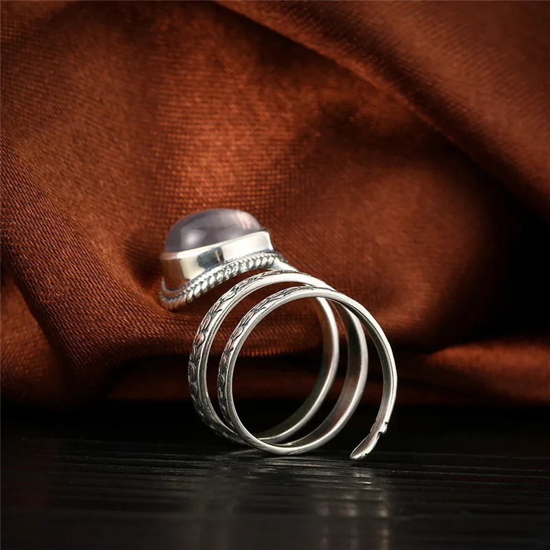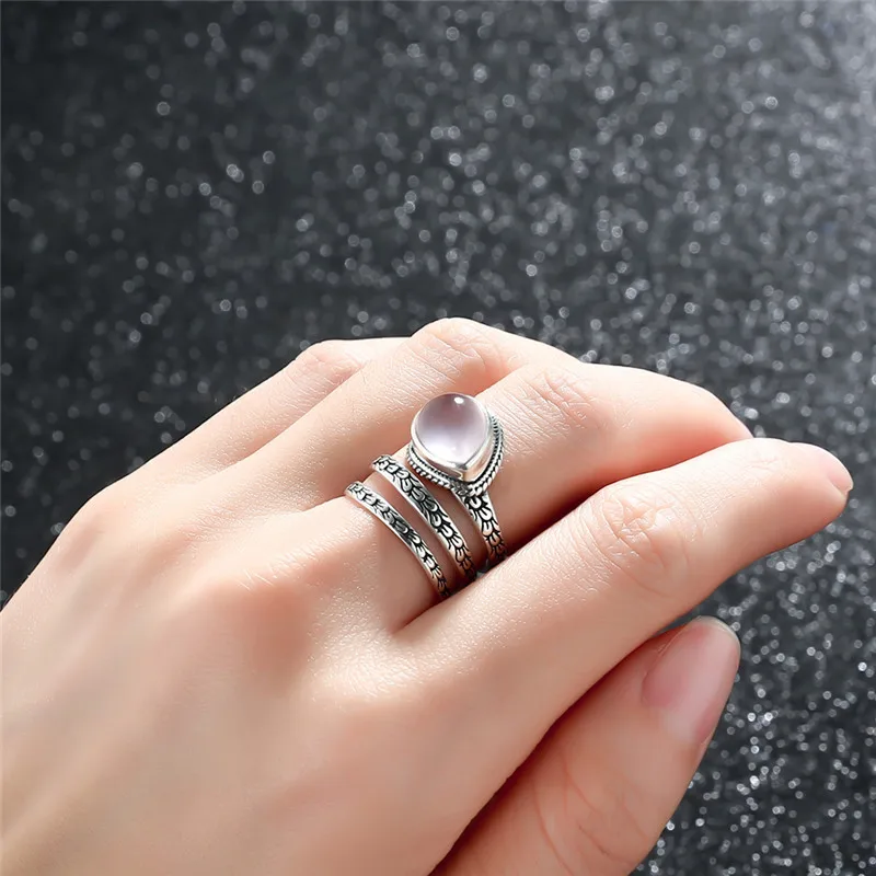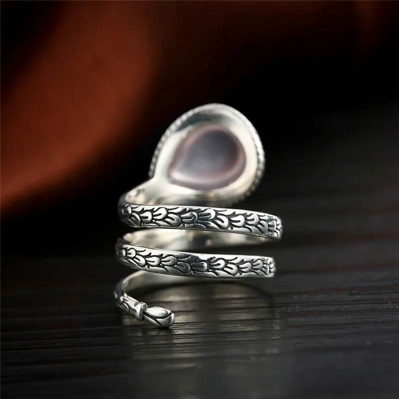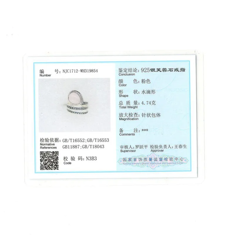 Thai Silver Pink Stone Rose Quartz Rings 925 Sterling Silver Finger Ring for Women Water Drop Shape Fine Jewelry