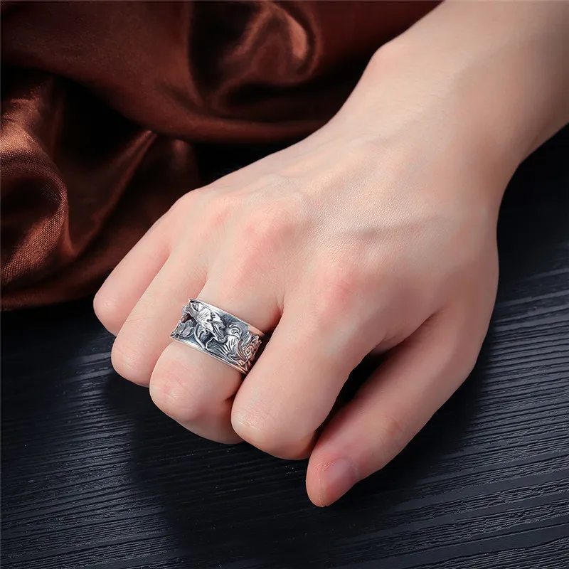 Vintage Lotus Leaves Leaf Ring for Men Women Mens Rings 999 Sterling Silver Jewelry Wholesale Best Gift