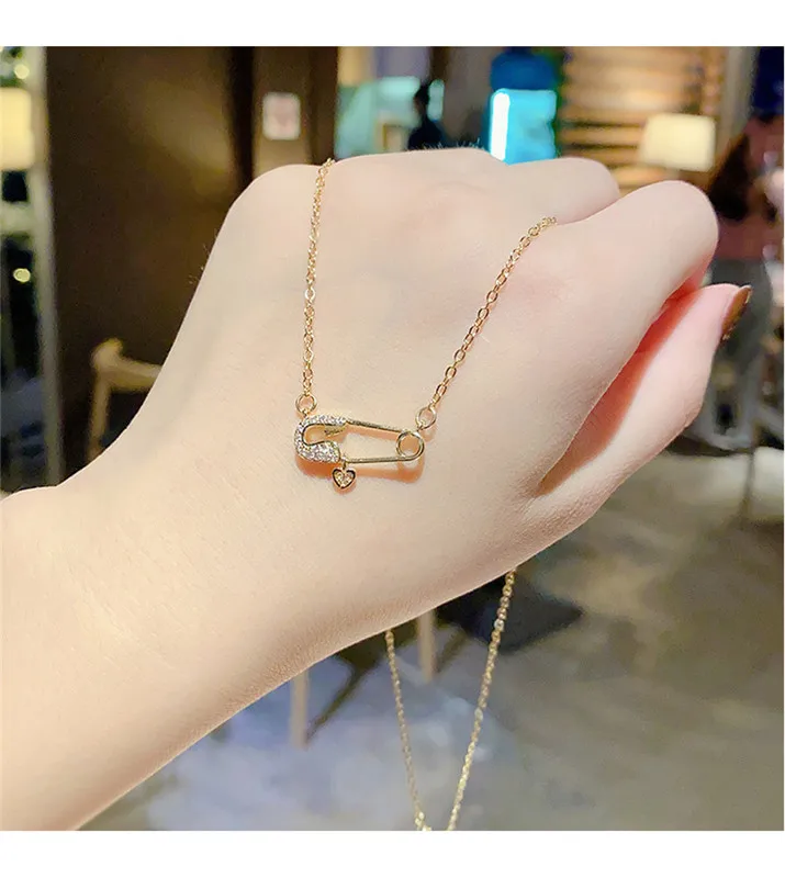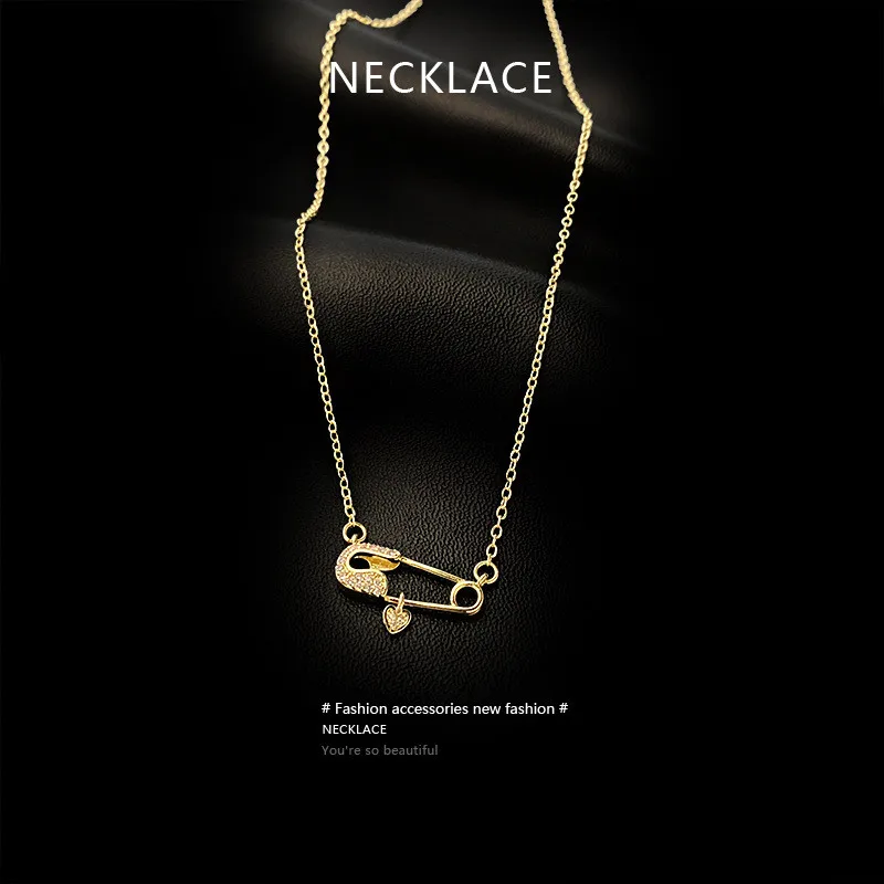 Zircon Pin Titanium Steel Necklace Female Tide Niche Design Sense Clavicle Chain Personality Pendant Jewelry For Women