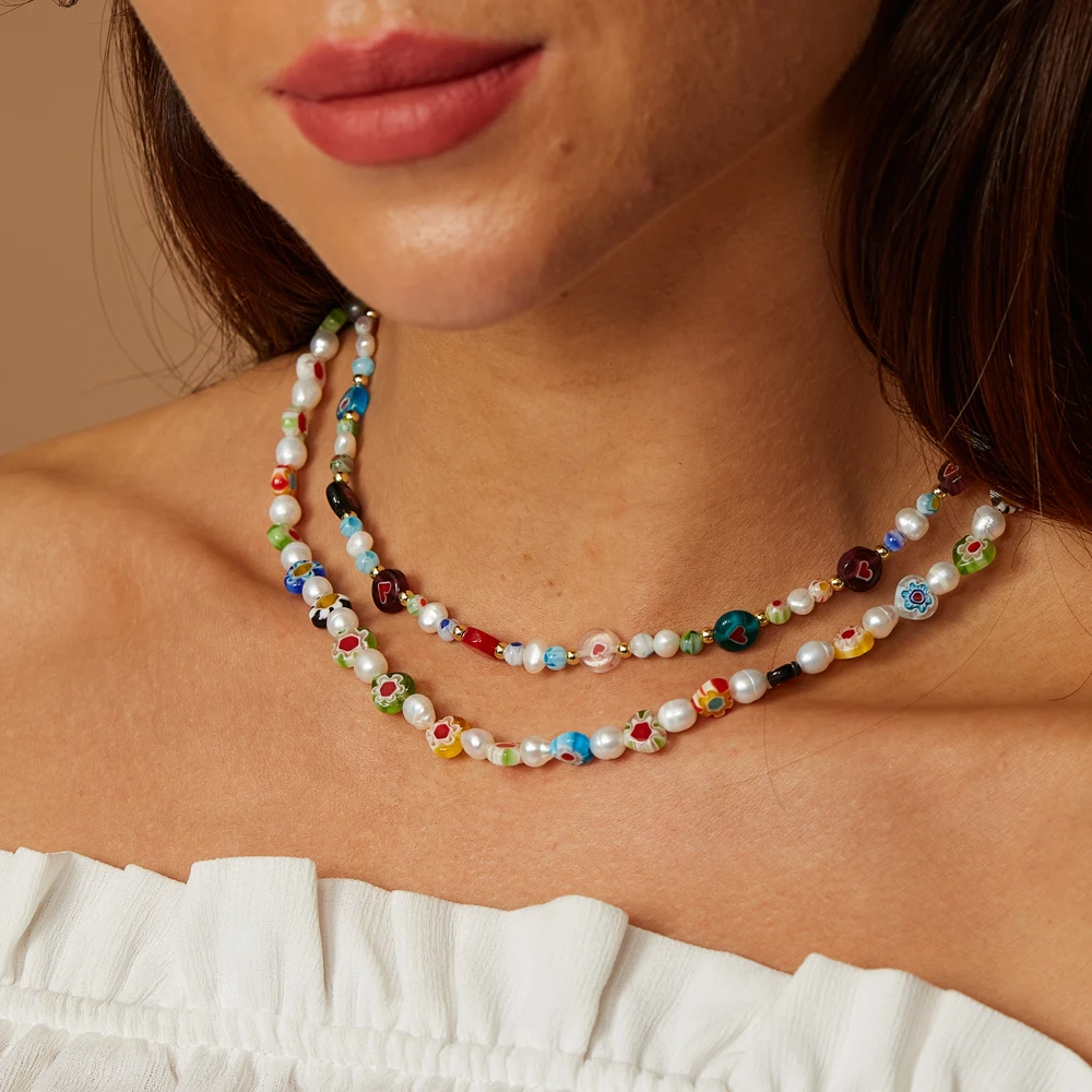 ZMZY Colour Boho Natural Fresh Water Pearl Necklace Color Liuli Glass Flower Beads Choker Necklace Beach Femme Jewelry Gift