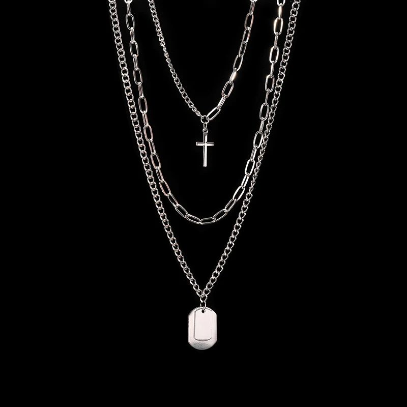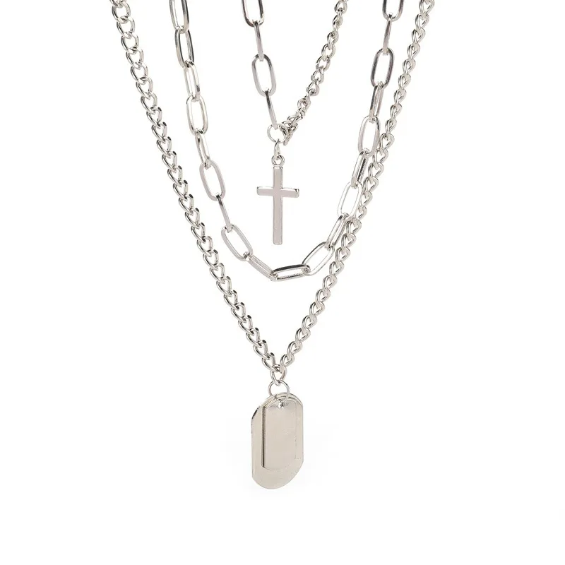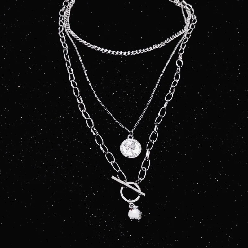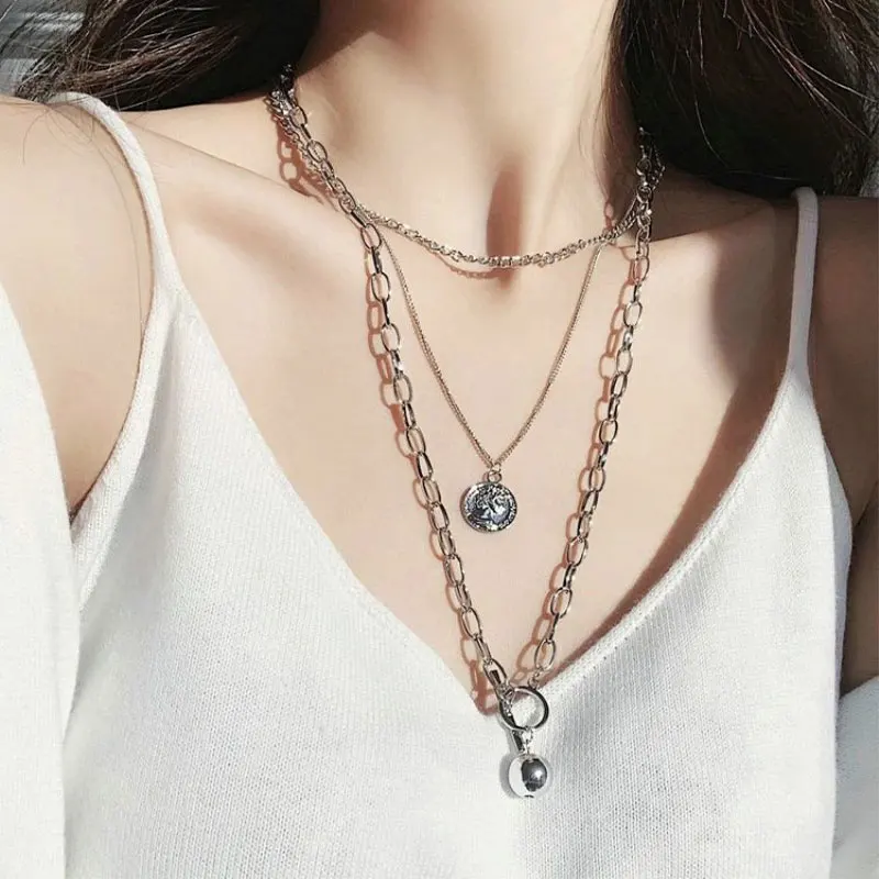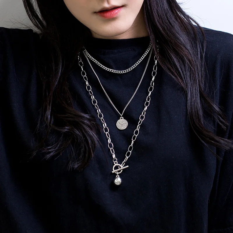 Zoeber Multi-Layer Punk Long Chain Necklace Hip Hop Metal Ball Coin Cross Pendant Necklace for Women Men Goth Jewelry Gifts